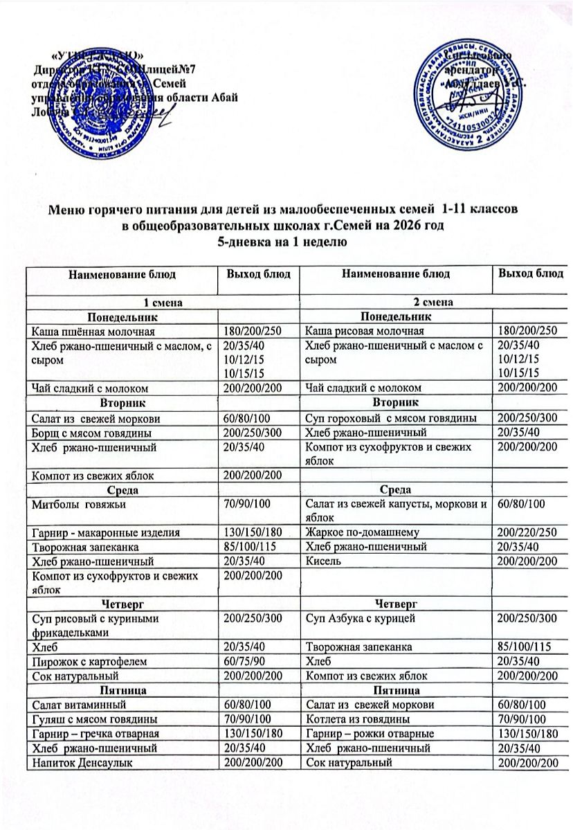 Меню 5-дневка на 1 неделю Меню 5-дневка на 2неделю » «Средняя общеобразовательная школа-лицей № 7»